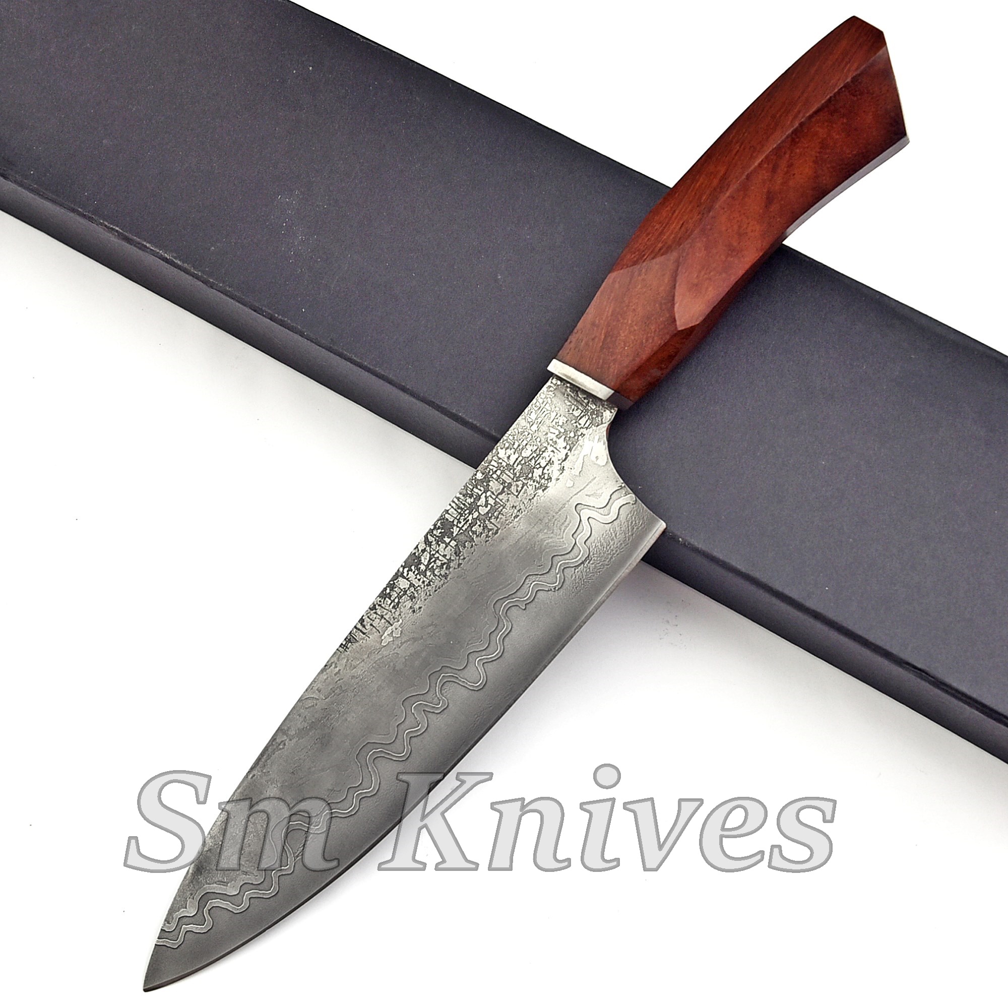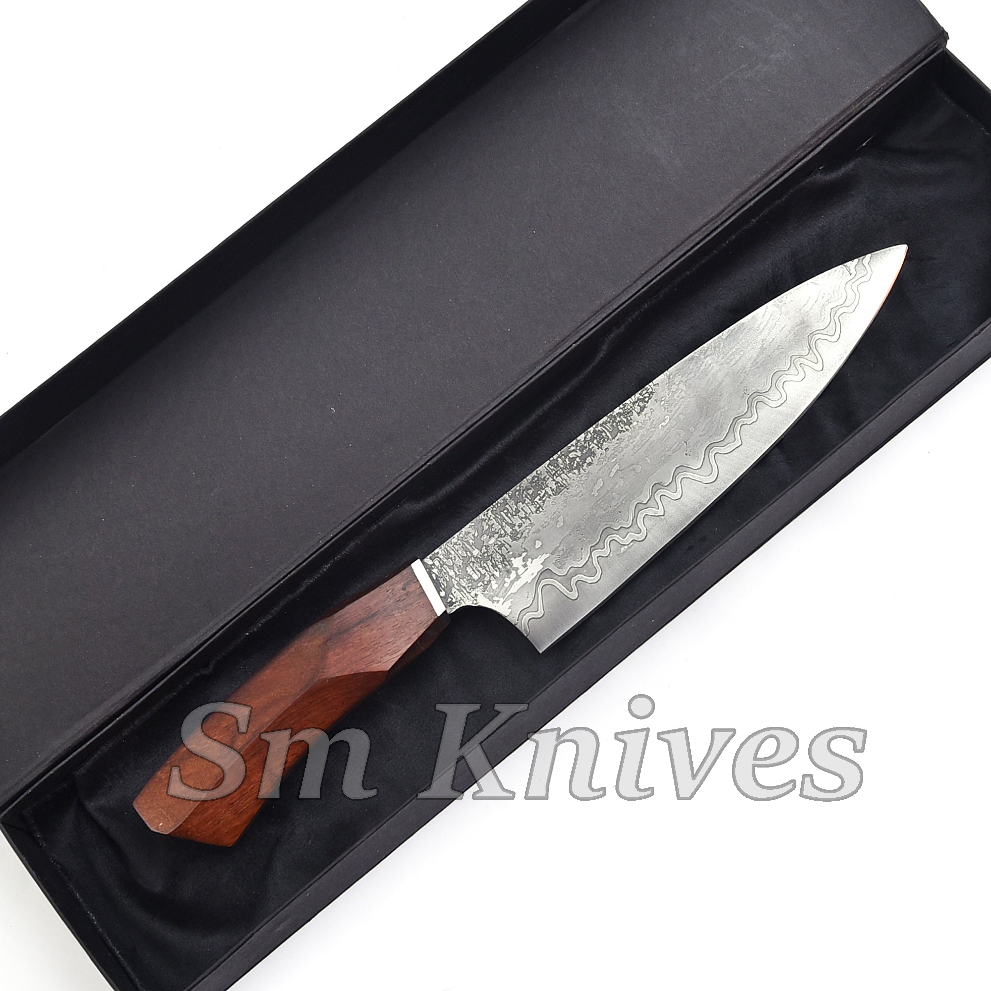 This is ever best chef knife we made for your love one , Thehandmade knife, with an unique moire,clear black & white texture,rich layers and handmade.